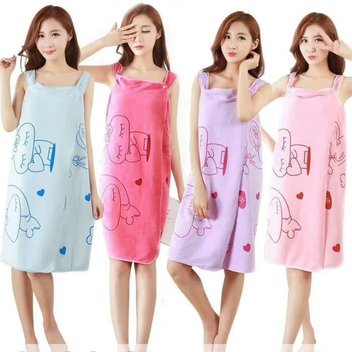 Anda sering keluar kamar mandi dengan hanya dibungkus handuk mandi ?? Malu donk kalau dilihat orang.Dengan baju handuk, anda tidak perlu malu lagi saat keluar kamar mandi. Baju handuk jika dipakai seperti memakai dress. Selain berfungsi untuk mengeringkan badan sehabis mandi, juga cocok dipakai sehabis berenang atau saat berjemur di pantai.Berbeda dengan keluaran sebelumnya, model baru ini lebih trendy, ada motif seperti di gambar dan bahan juga jauh lebih tebal dan halus, nyaman di kulit, bahan nyerap airMaterial : Polyester + ultra-fine fibers- Material : Polyester + ultra-fine fibers- Daya Serap Air Tinggi- Bisa digunakan Sebagai Dress- Bisa Juga digunakan Sebagai Handuk- Size : 150 x 80 cm- Barang 100% Sesuai dengan Gambar dan Deskr