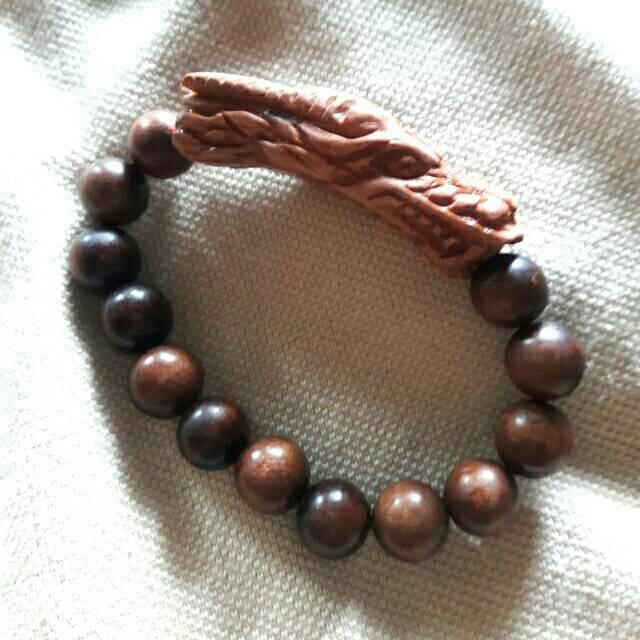 gelang butir dengan kombinasiUkir kepala naga dari bahan Kayu setigi atau santigiDimensi bulat 12 mm....stok r