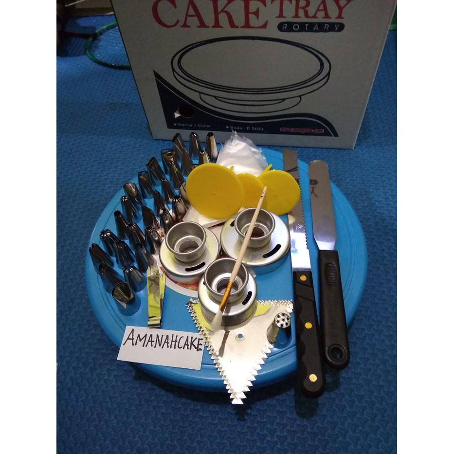 NOTE : WARNA MEJA RANDOM ( PINK, HIJAU , BIRU )11 macam paket dekorasi kue ini berisi beberapa cetkan kue yang menarik dan dengan harga yang terjangkau 1. Meja putar2. 29 spuit lokal wilton 3. 1 set cetakan donat 4. 1 set paku mawar plastik dengan ukuran berbeda 5. pisau roti6. spatula7. scrapper stenlis8. spuit Rumput9. Jepitan Nastar10. 10 pics plastik segitiga11. Penghalus kue ( kuas )HAPPY SHOPING#CETAKANKUE #LOYANGKUE #PAKETDEKORA