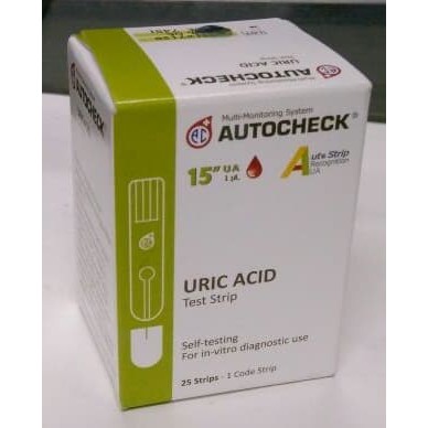 Strip Cek Asam urat AutocheckISI 25 STRIPAUTOCHECK - Strip Asam Urat merupakan strip untuk monitor Asam Urat untuk digunakan pada alat cek Autocheck (Glucose, Cholesterol, Uric Acid). Waktu pengukuran yang sangat singkat hanya 15 detik dengan hasil yang akurat.Strip ini hanya dapat digunakan dalam satu kali pemakaian.1 Box isi 25 buah stripReady silahkan diorderBisa Gosend langsung pi
