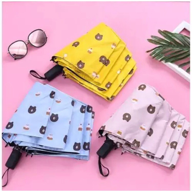 Payung Lipat Character Brown LinePayung Lipat Character Brown Line ini Sangat Simple & Elegan karena bersifat warna yang Fashion dan cute cocok untuk anak muda zaman nowKelebihan :-Anti UV Lapisan Silver-Gagang kokoh tidak mudah patah-Tombol tutup&buka payung yang sangat nyaman (tidak akan melukai tangan karena sdh ada pelindung lebih halus )-Sarung sesuai warna payung-Tiang besi anti karat-Fashionable & Simple Bahan : Polyester yang berkualitasRangka : Besi yang berkualitas lebih kokoh saat diterpa angin kencang ( Bukan aluminium)Tolong cantumkan warna di keterangan untuk menghindari kesalahan pengiriman . Jika tidak akan kami beri random ?Warna :1.Biru 2•Pink3.KuningPanjang = 25cm (Dilipat / Ditutup )Panjang = 53.5 cm (Dibuka)Diameter= 100cm (Dibuka)#Payung #Umbrella #payunglipat #payungilegan #payungsimple #payungkeren #payun