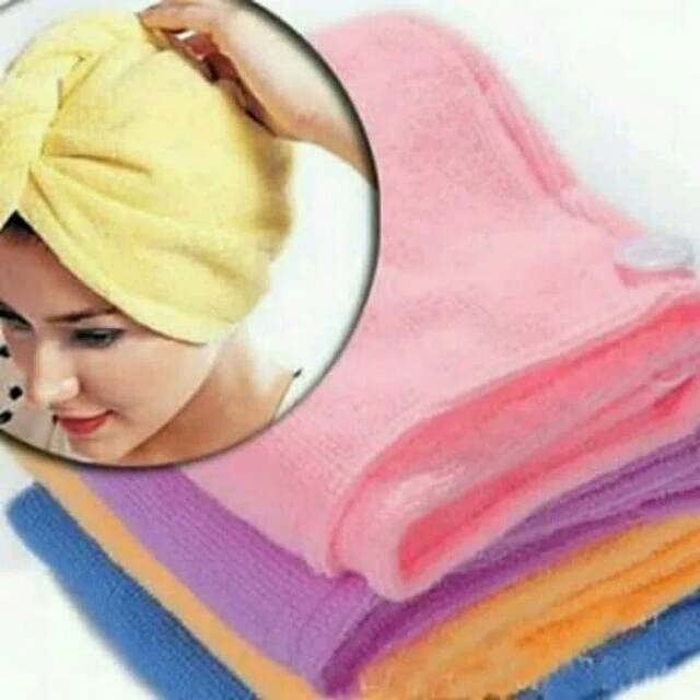 HANDUK KERAMAS / CREAMBATH/ MAGIC TOWEL CAP/ HANDUK KEPALAHanduk terbuat dari microfibre (serat )dengan tingkat penyerapan air setinggi 7 kali dari serat yang normal. Menggunakan Magic Towel Cap, Anda dapat mengeringkan rambut Anda dengan cepat & mudah, menghindari kerusakan rambut yang disebabkan oleh pengering rambut dan juga mencegah kerontokan rambut.Varian warna- Biru 14 pcs- Pink 14 pcs- Ungu 15 pcsNCara Penggunaan:1. Membungkuk ke depan dan turunkan rambut anda secara alami2. Masukkan di topi pengeringan rambut & putar di sekitar rambut.3. Lipat kembali & ikatkan pada kancing di bagian bela