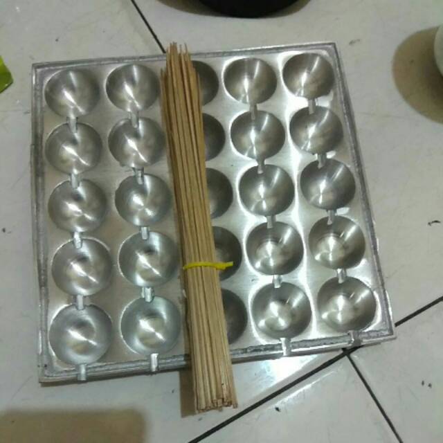 cetakan sate telur puyuh 25 lubangukuran 20x20cmcetakan terbuat dari Alumunium cor (tidak akan berkarat/ngelupas)keunggulan cetakan alumunium cor makin lama di pakai makin bagus, anti lengket dan mudah di bersihkan, berbeda dengan teflon jika pemakaian lama lapisan teflon akan mengelupas dan berkarat serta jadi lengketcara pemakaiancukup dengan mengoleskan margarine ke dalam cetakan kemudian masukkan telur puyuh satu persatu (bisa menggunakan telur biasa sesuai kreasi)nb: sblm dipakai cuci loyang kemudian masak dengan ampas kelapa, loyang siap digu