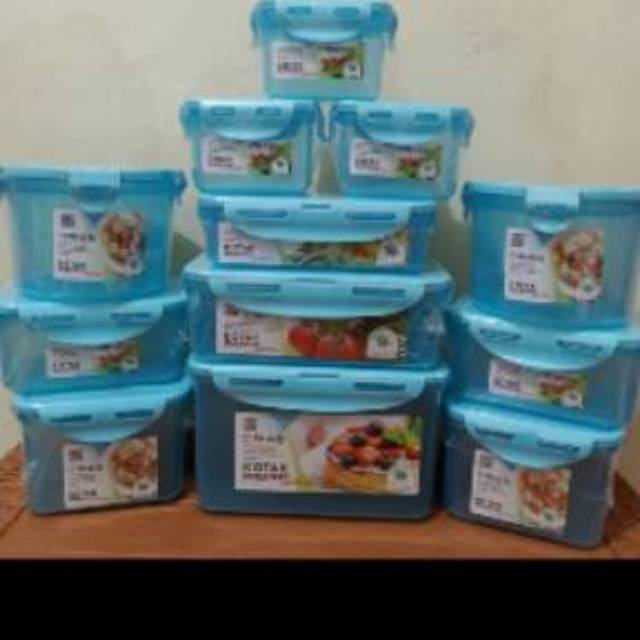 Lock Four Set Of 12 adalah tempat penyimpanan multi fungsi bermerk Green Leaf.Memiliki tutup yang kedap udara dengan karet seal, membuat bahan makanan tetap awet pada waktu disimpan.1 Set terdiri dari 12Pcs- 1 x 2.2Liter (Persegi Panjang)- Ukuran 205 x 135 x 124mm- 1 x 1.1iter (Persegi Panjang)- Ukuran 205 x 135 x 64mm- 1 x 720ml (Persegi panjang)- Ukuran 181 x 120 x 47mm- 2 x 650ml (Persegi panjang)- Ukuran 152 x 109 x 69mm-3 x 330ml (Persegi panjang)-Ukuran 109 x 88 x 68mm- 2 x 1Liter (Persegi)- Ukuran 135 x 135 x 88mm-2 x 960ml (Bulat)-Ukuran 140 x 92mmWarna Ready : merah .hijau .biru to