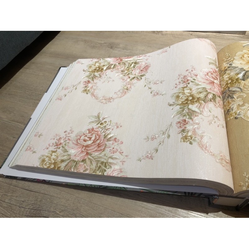 Name: Wallpaper Dinding Klasik Bunga Shabby Mewah Gold Pink Merah Cream Ornament