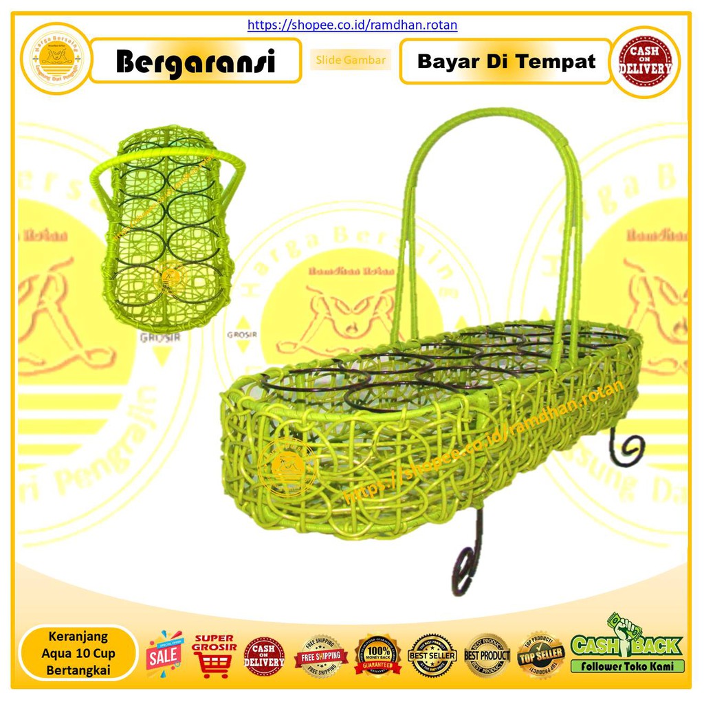 Jual Murah Perlengkapan di Kabupaten Pacitan Keranjang Aqua 10 Cup Model Oval Bertangkai - Keranjang Aqua Rotan Sintetis 10 Skat Pake Jinjingan dari Tidak Ada Merek Kab. Cirebon