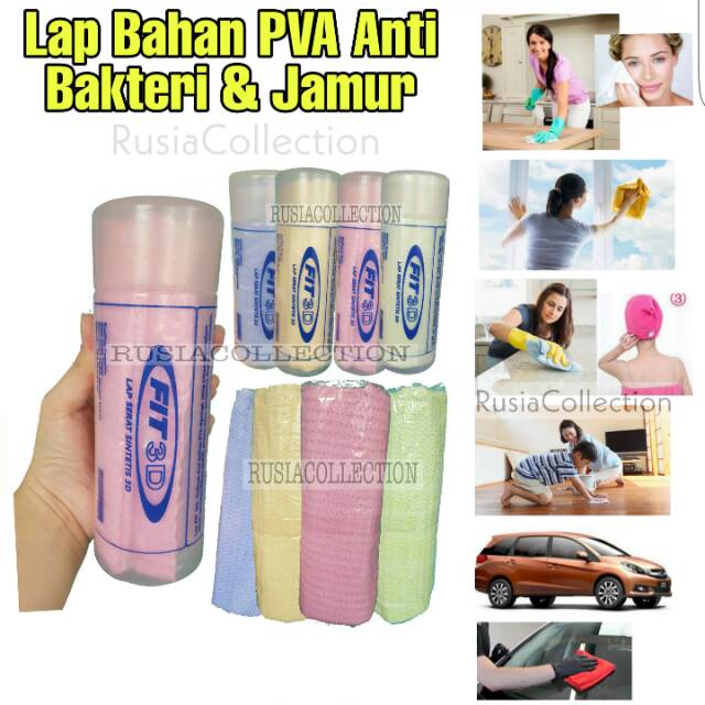 Lap Kanebo Chamois FIT bahan berSeratLap handuk yang lembut dengan bahan khusus PVA yang anti-bakteri dan anti-jamur. Lap ini sudah cukup dikenal dengan nama "Chamois". Sekali usapan, lap ini bisa mengeringkan rambut hingga 90%. Para olahragawan loncat indah Olimpiade bahkan sering menggunakan handuk ini setelah keluar dari kolam renang. Untuk lap perabot atau mobil,cuci motor, mobil, kaca rumah, alat2 dapur rumah tangga seperti kulkas, mesin cuci, mejikom. lap ini tidak meninggalkan goresan. Lap ini bisa kering dengan cepat setelah pemakaian, menghindari bakteri dan jamur untuk berkembang biak.Alamat: Jln.Bulak Rukem Timur gang 2. Cari Di Peta GPS Map ketik cari : TOKO SUPER HARVEST SURABAYA DAN RUSIACOLLECTION. (Cari yg huruf besar gini ya