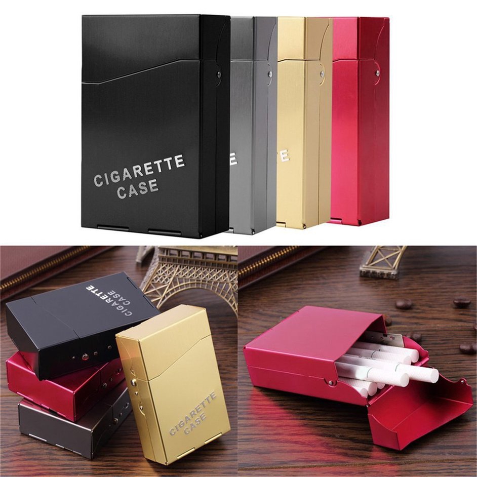 Aluminum Cigar Cigarette Tobacco Holder Storage Case Able to Place in 20pcs CigaretteFeatures:Lightweight and elegant design.Durable aluminum hard case against press or damage your cigarettes.Easy to open and closeConvenient to carry, Keep cigarettes from moisture and mould effectively.Perfect gift for Wedding, Fathers Day, Birthday, Christmas Stylish, convenient and durable.Retainer of safety and health.Description:In addition to carrying 20pcs regular cigarettes,The cigarettes case can also be used to hold money and or credit card. To prevent the cigarette pack from being crushed.Can be loaded into the whole box of cigarettesSpecifications:Material: AluminumDimension: 90 x 57 x 26mmColor: Red, Grey, Black, GoldNet Weight: 35gPackage inclueds:1 x Aluminum Cigarette CaseNotes:1. Due to the difference between different monitors, the picture may not reflect the actual color of the item. We guarantee the style is the same as shown in the pictures.2. Due to personal measurement technique is different, there may be 1-3 cm error of the physical.Thank